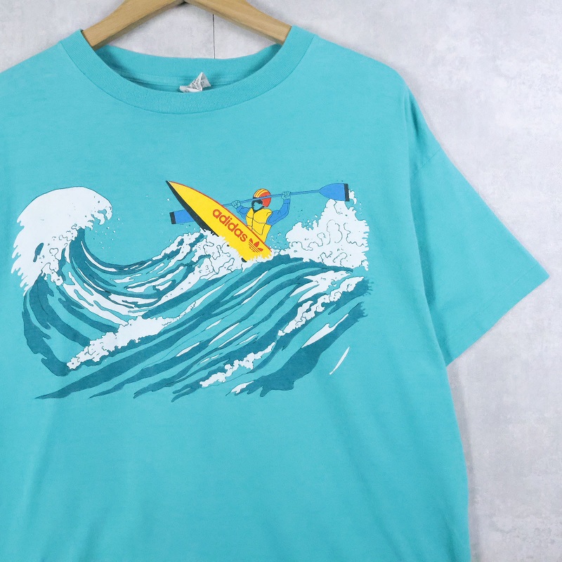 90's adidas USA製 カヤックプリントTシャツ M [167721]