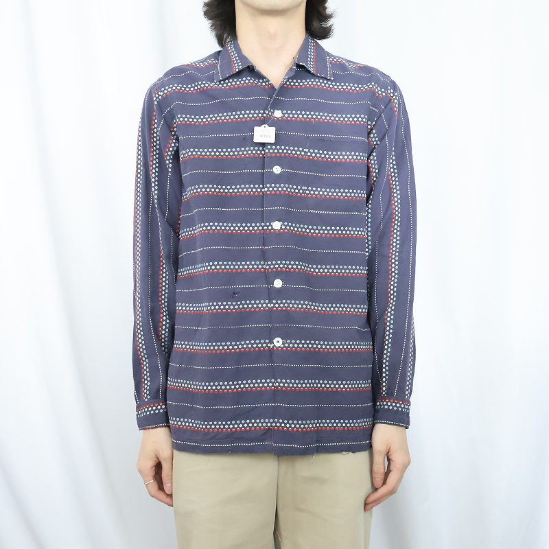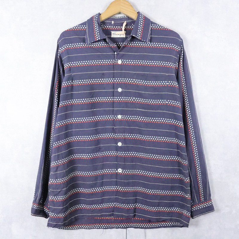 50's SKIPPER USA製 ボーダー柄 コットンオープンカラーシャツ M [167724]