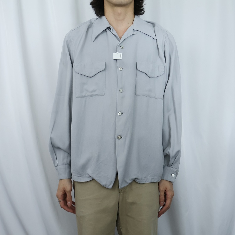 40〜50's McGREGOR USA製 レーヨンギャバジン オープンカラーシャツ L [167725]