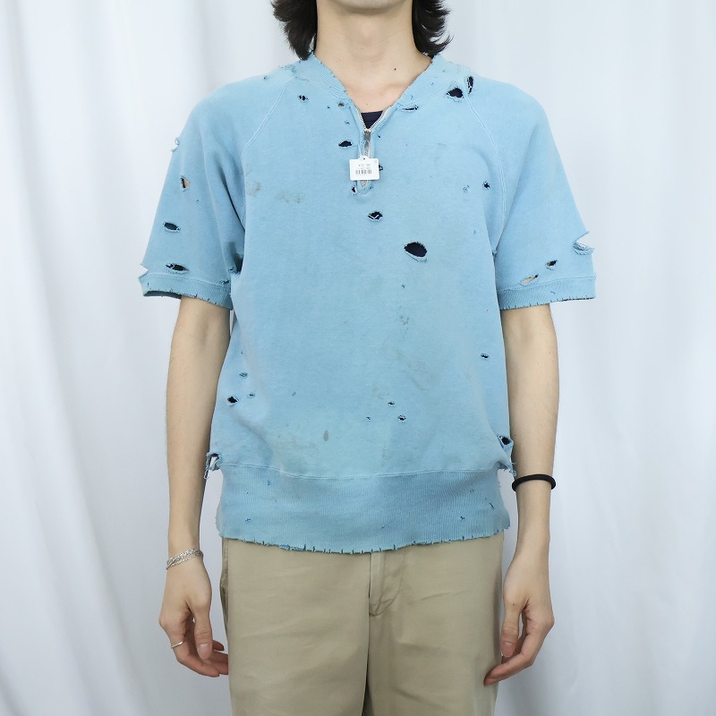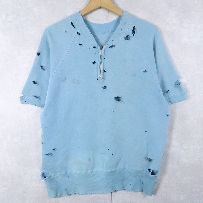 50's ハーフジップ 無地 半袖スウェット [167728]