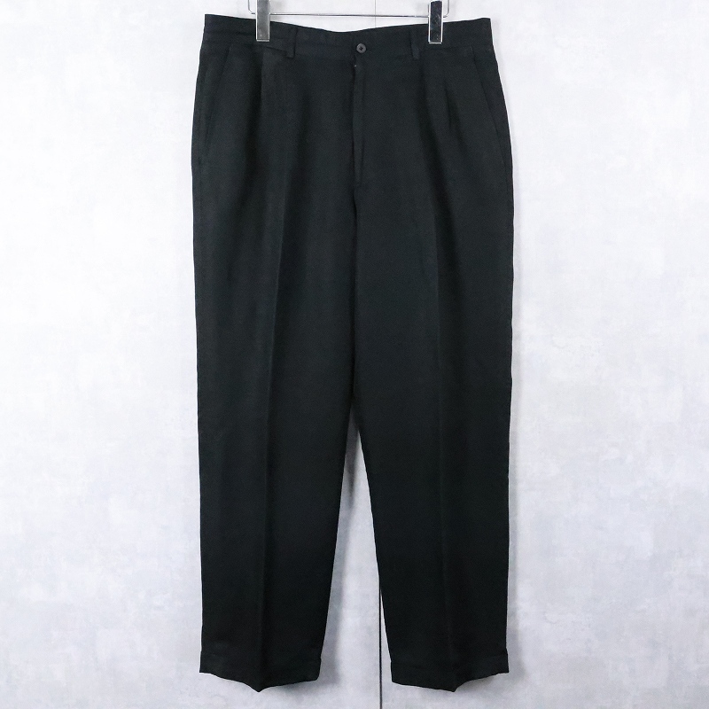 claiborne 2タック リネン×レーヨンスラックス BLACK W35 [167749]