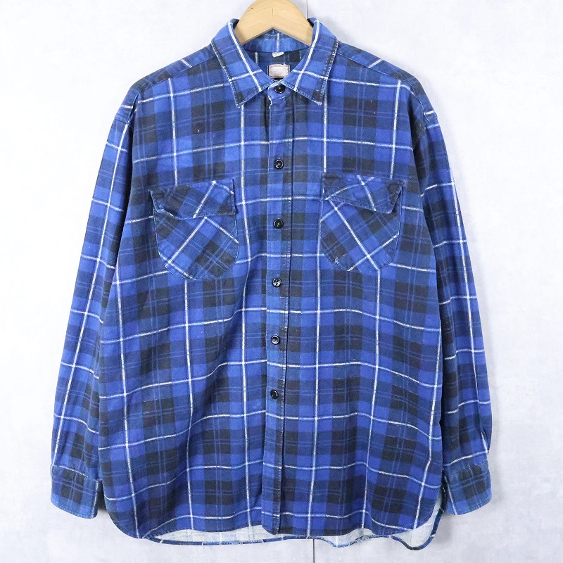 50〜60's チェック柄 マチ付き プリントネルシャツ SIZE17 1/2 [167774]