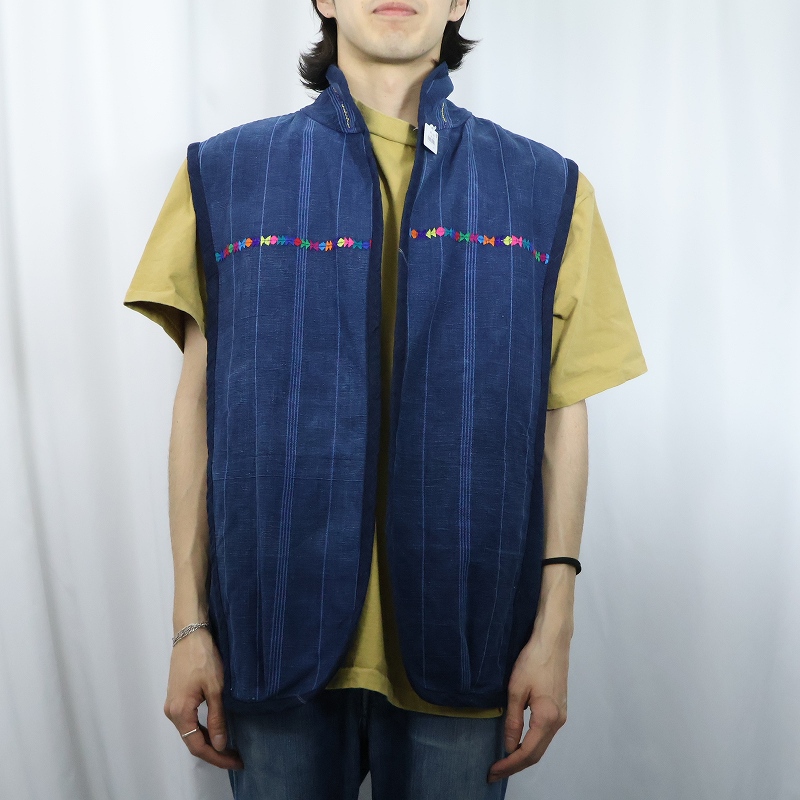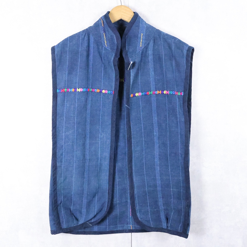 ストライプ柄 刺繍入り インディゴベスト [167853]