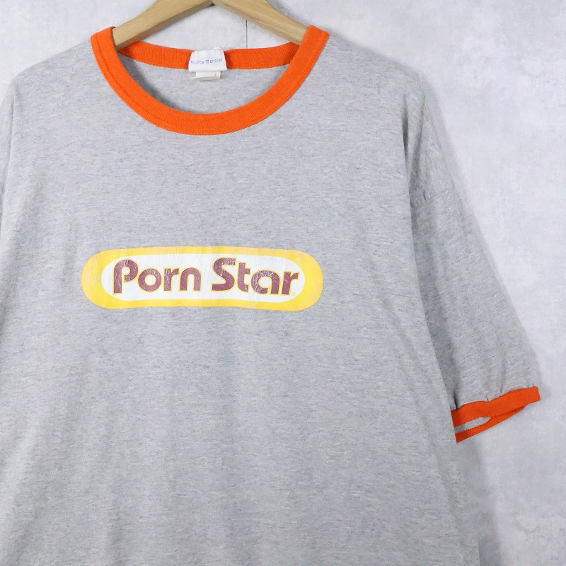 90's Porn Star USA製 ロゴプリントリンガーTシャツ [167895]