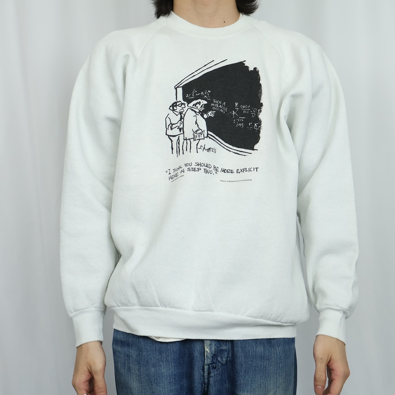 90's Sidney Harris USA製 "I Think You Should Be More..." イラストプリントラグランスウェット XL [167903]