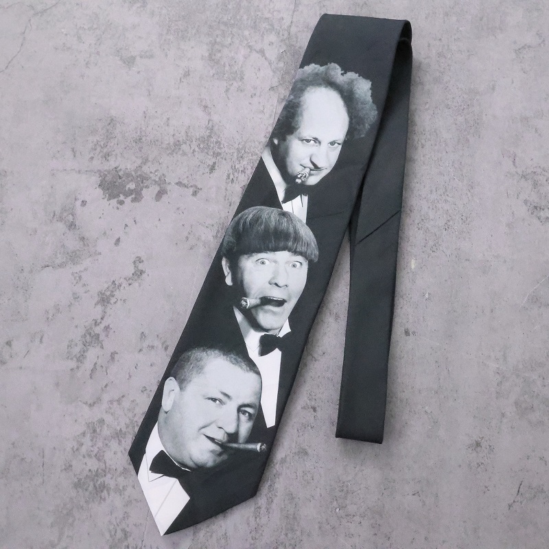 90's Ralph Marlin USA製 "The Three Stooges" コメディアンプリント ネクタイ BLACK [167951]