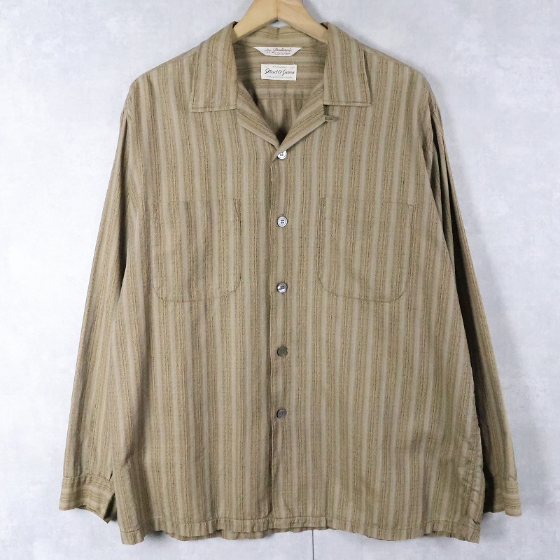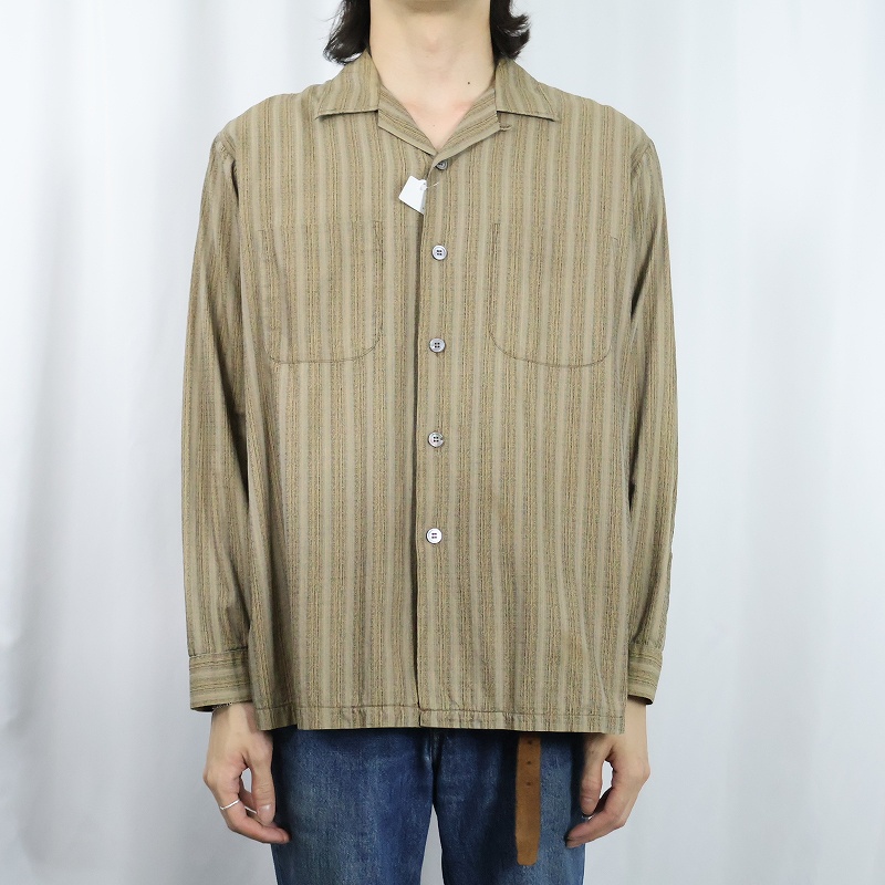 60's Stradivari "Strad-o-Sands" ストライプ柄 コットンオープンカラーシャツ L [167974]