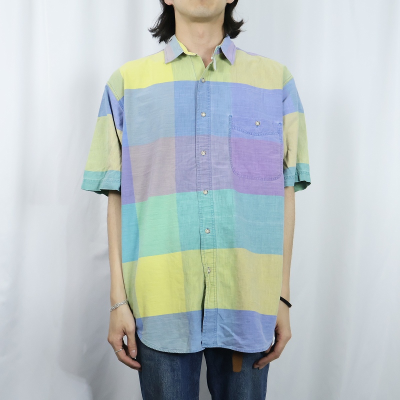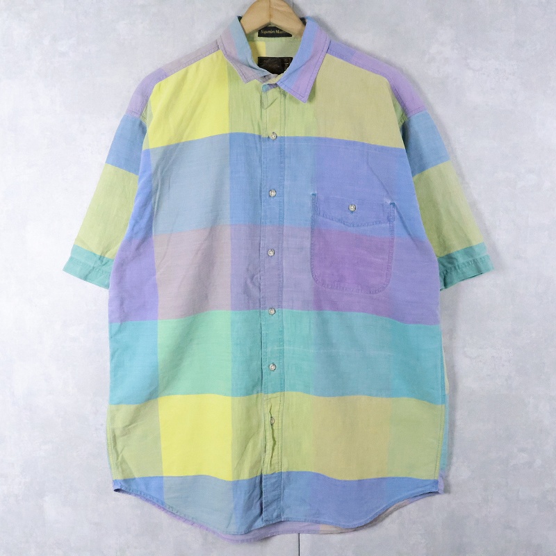 80's Eddie Bauer チェック柄 コットンシャツ L [167988]