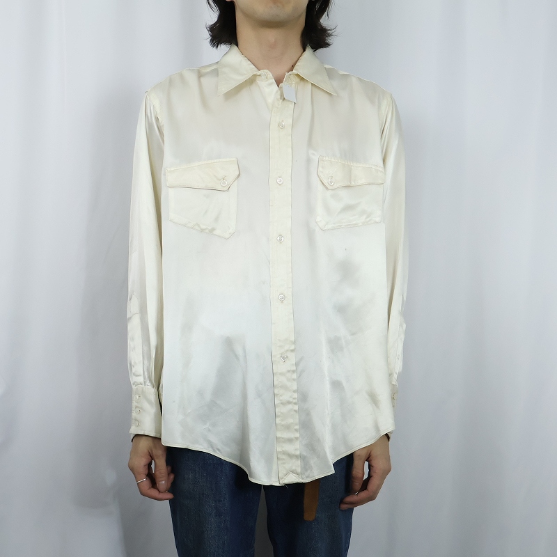 40's LEVI'S ロングホーン ダイアゴナルポケット サテンウエスタンシャツ [167989]