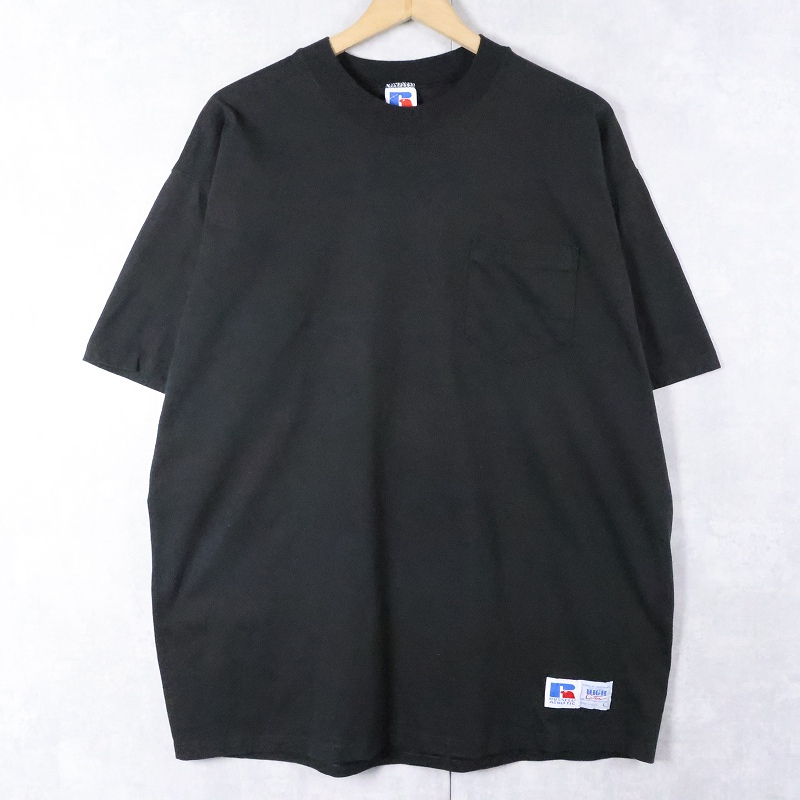 90's RUSSELL ATHLETIC USA製 ポケットTシャツ BLACK L [168004]