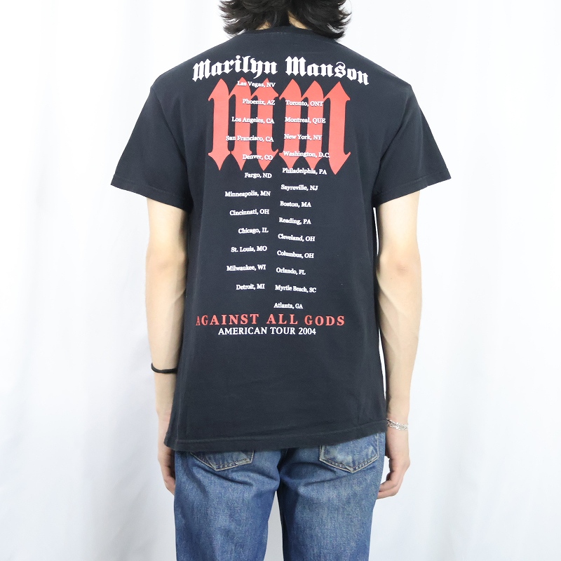 2004 MARILYN MANSON "AGAINST ALL GODS" ロックバンドツアーTシャツ BLACK M [168008]