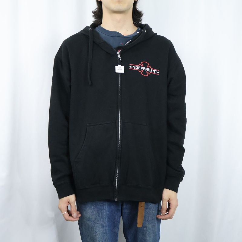 INDEPENDENT スケートブランド ロゴプリントスウェットジップパーカー BLACK L [168013]