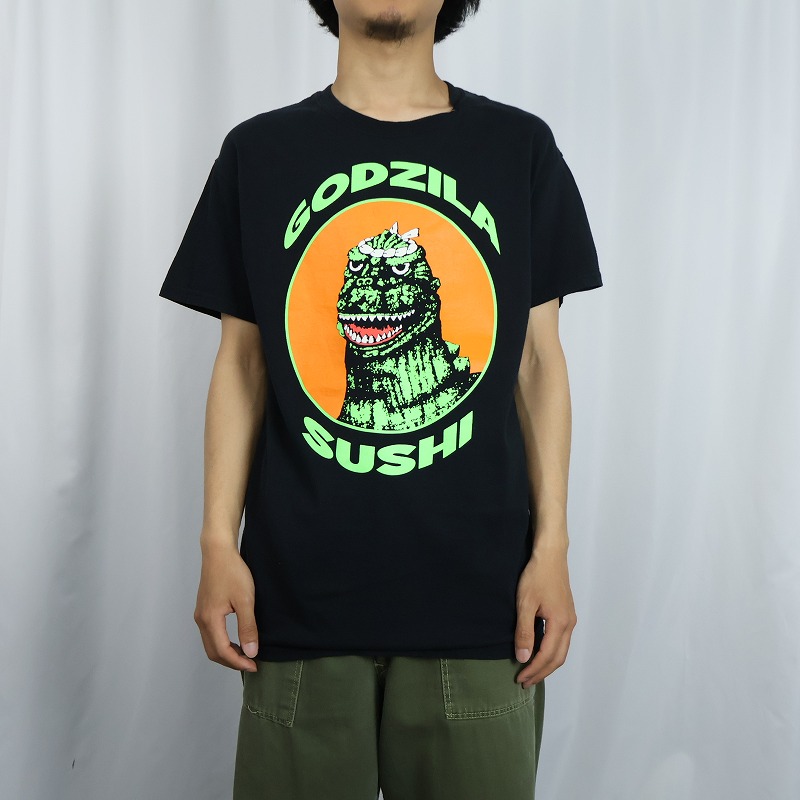 GODZILA SUSHI キャラクターパロディプリントTシャツ BLACK [168044]