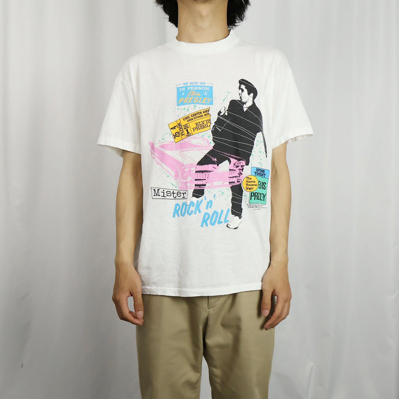 80's Elvis Presley USA製 ミュージシャンプリントTシャツ L [168051]