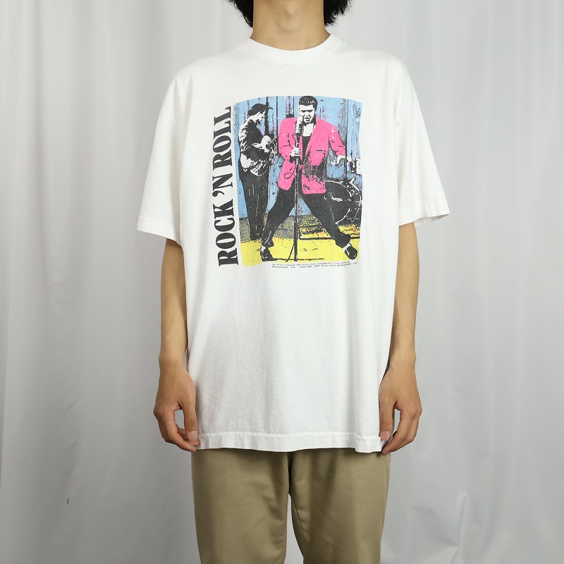 90's Elvis Presley USA製 "ROCK'N ROLL" ミュージシャンプリントTシャツ XL [168059]