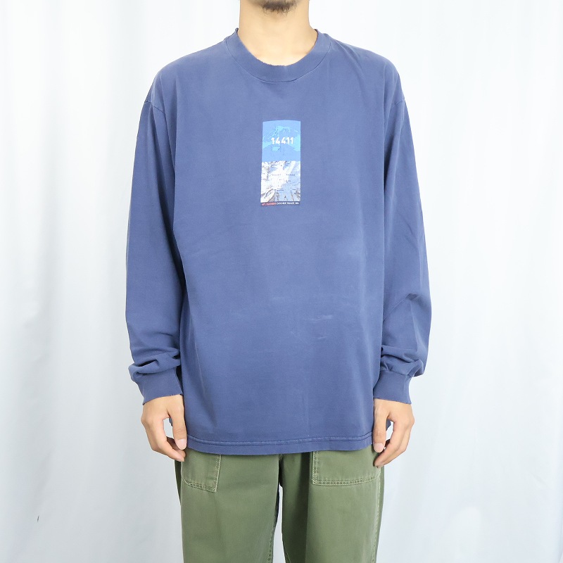 90's〜 THE NORTH FACE "MT. RAINIER CASCADE RANGE, WA" プリントロンT NAVY [168097]