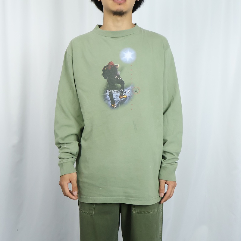 90's〜 THE NORTH FACE USA製 "Everest x6" 登山家プリントロンT L [168099]