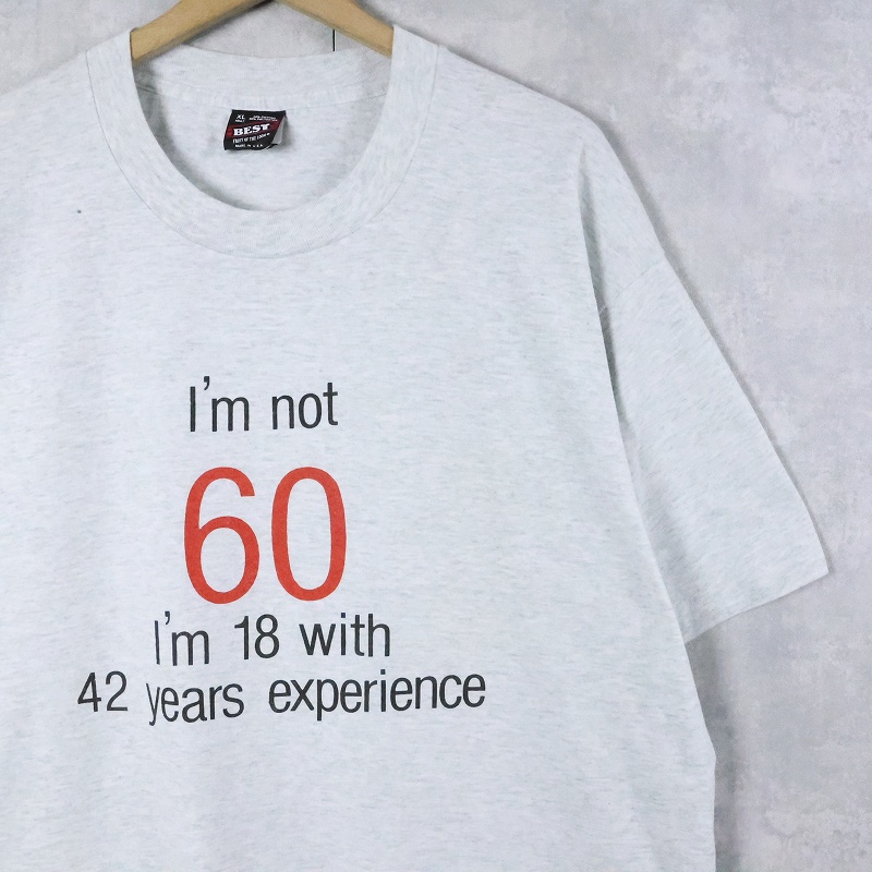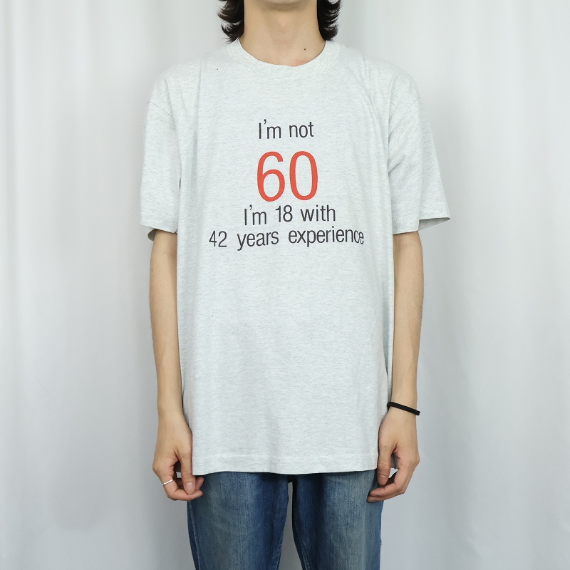 90's USA製 "I'm not 60..." メッセージプリントTシャツ XL [168175]