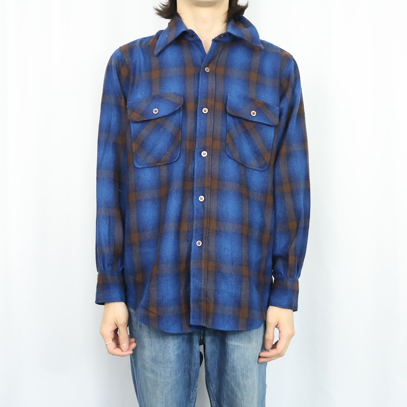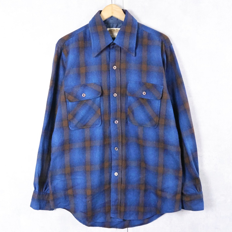 70's SIERRA MADRE オンブレーチェック柄 ウールシャツ M [168195]