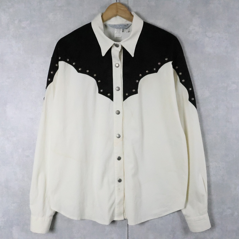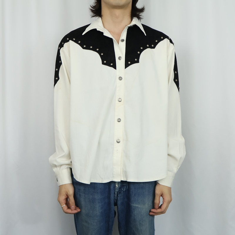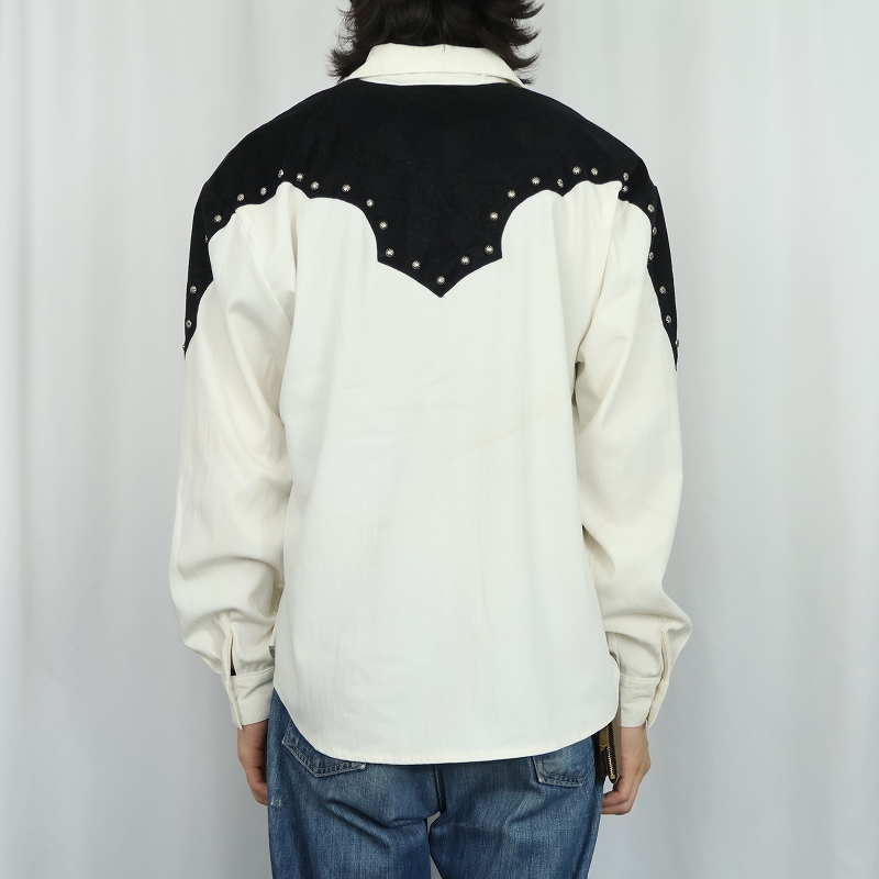 80's Lilia Smitty USA製 "チリメン" コンチョボタン付き レーヨン×コットンウエスタンシャツ L [168197]
