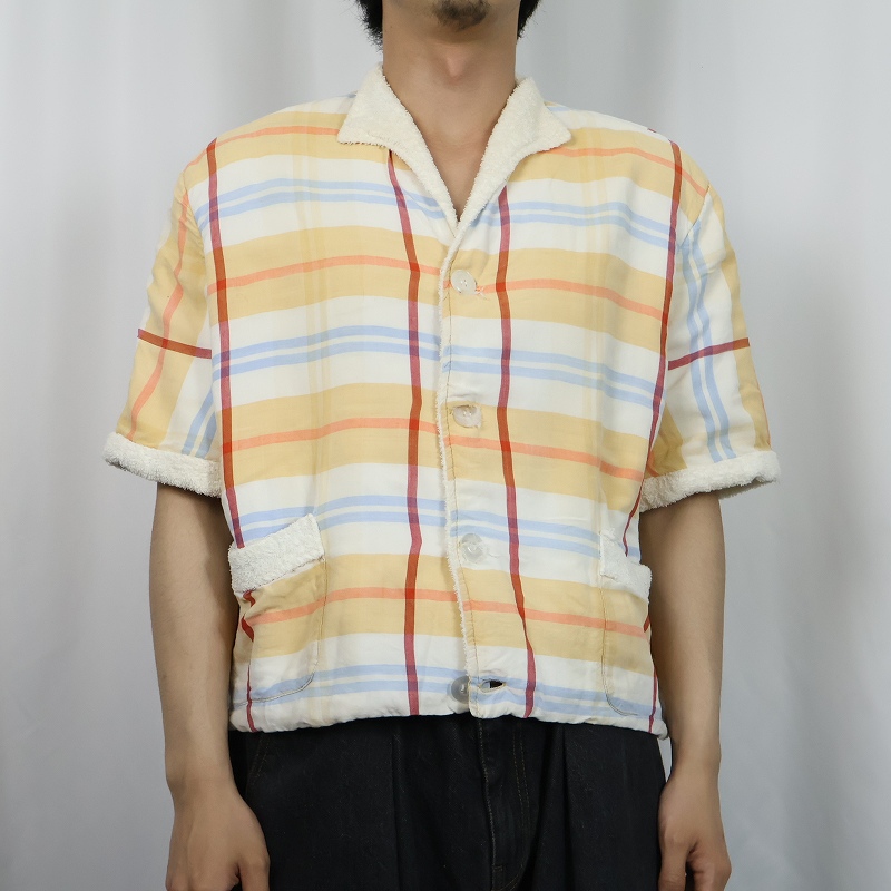 60〜70's チェック柄 パイル ビーチシャツ [168202]