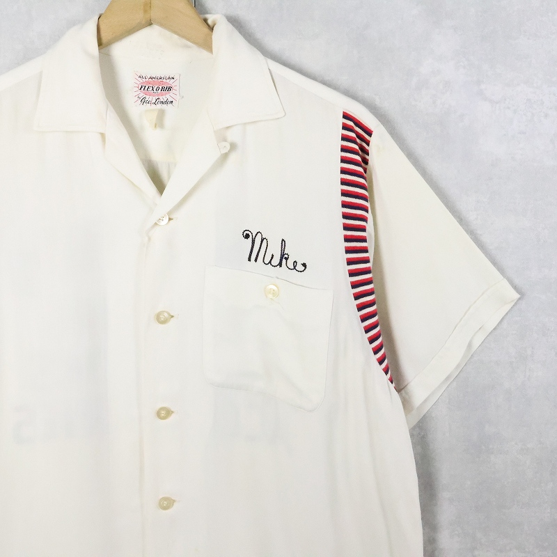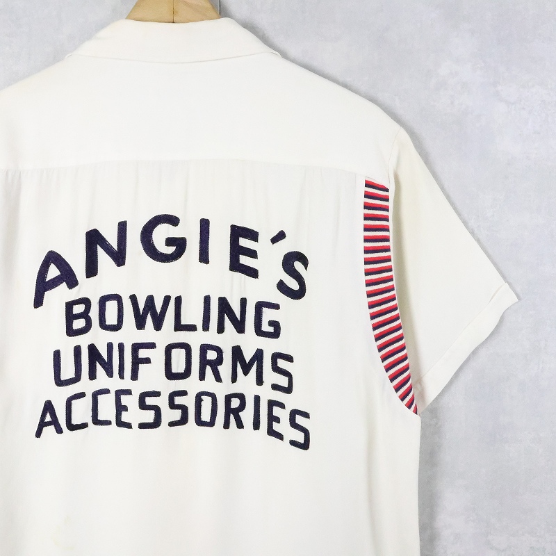 50〜60's George London "ANGIE'S..." チェーン刺繍 レーヨンボウリングシャツ M [168214]
