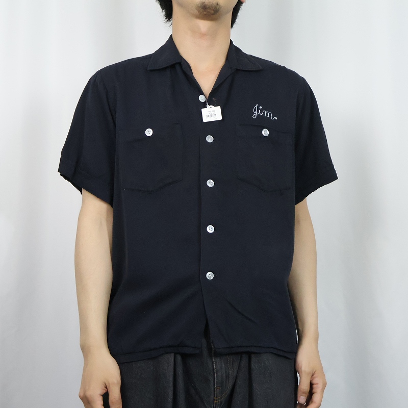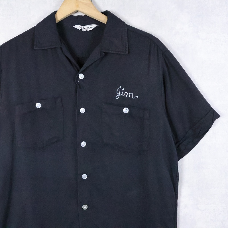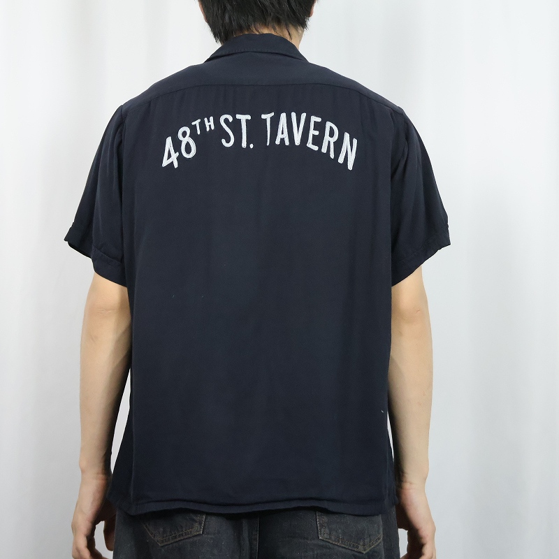 60's Artvogue "48th ST. TAVERN" チェーン刺繍 レーヨンボウリングシャツ BLACK M [168219]