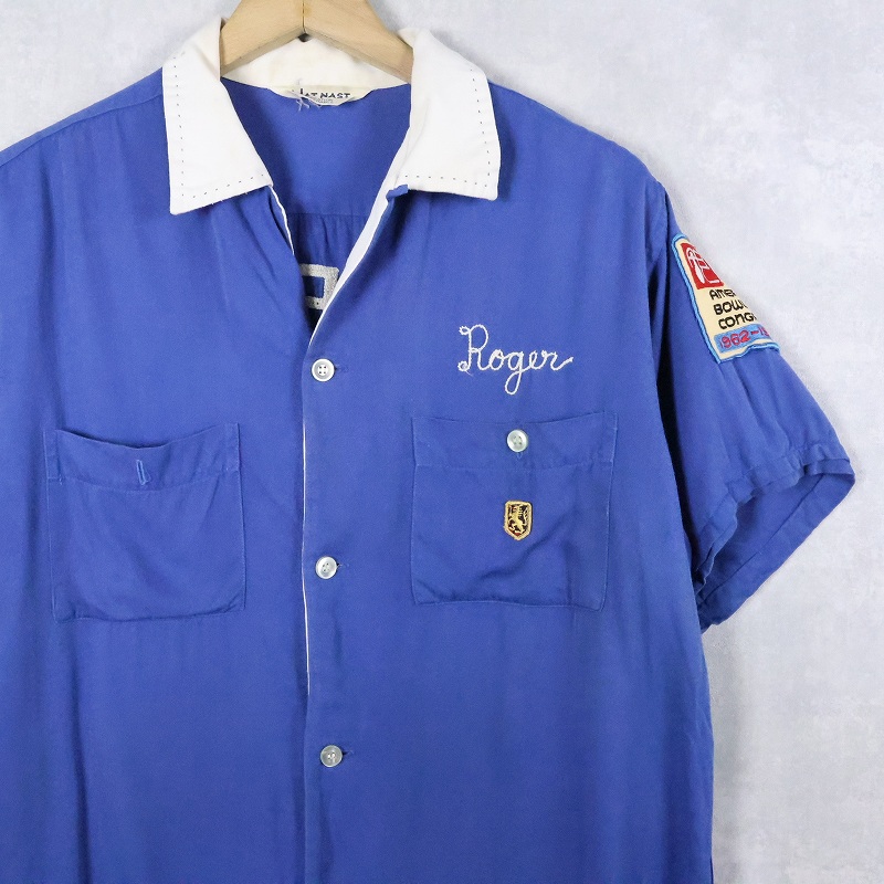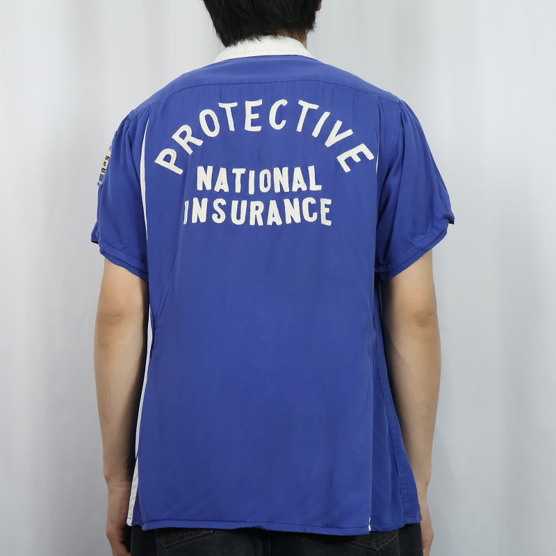 60's NAT NAST "PROTECTIVE" チェーン刺繍×ワッペン付き レーヨンボウリングカラーシャツ [168222]