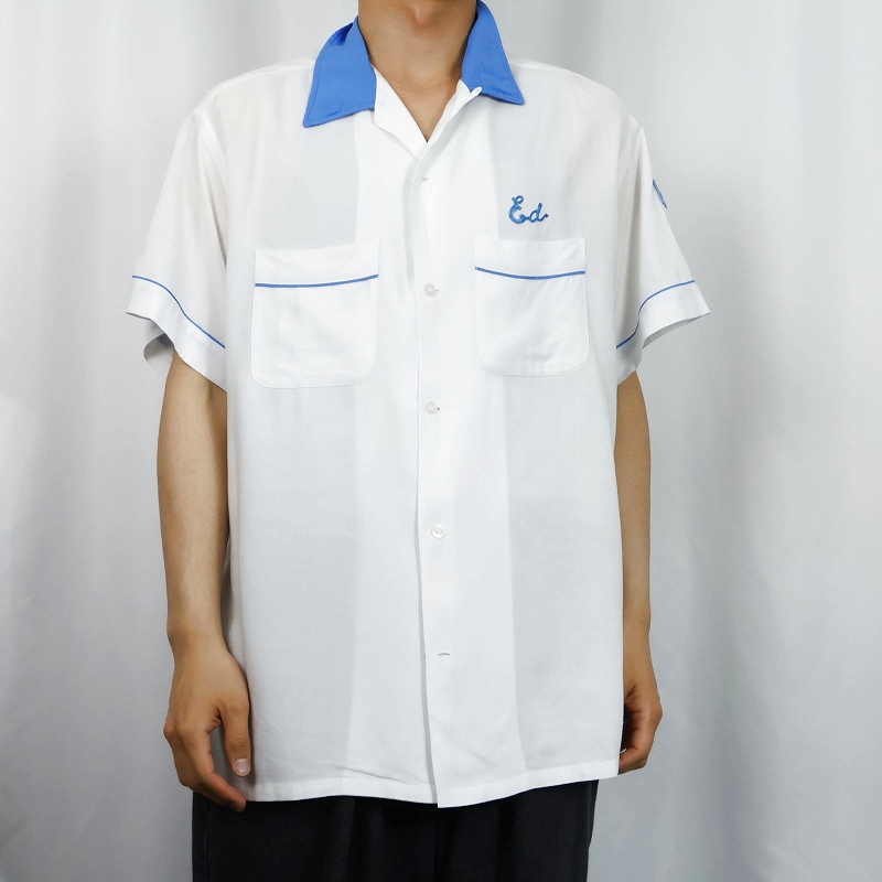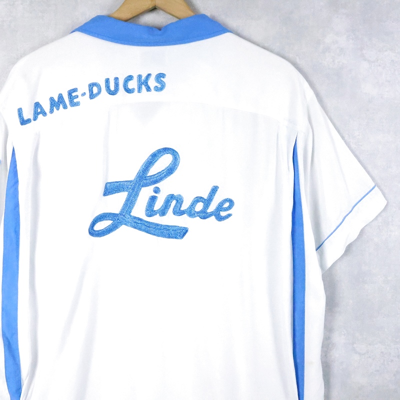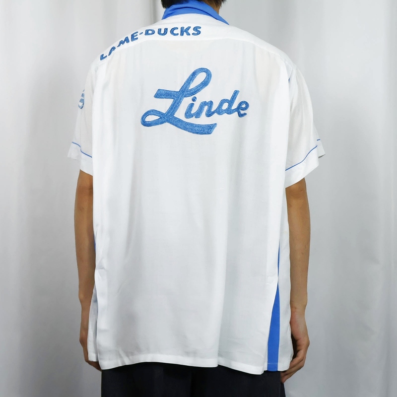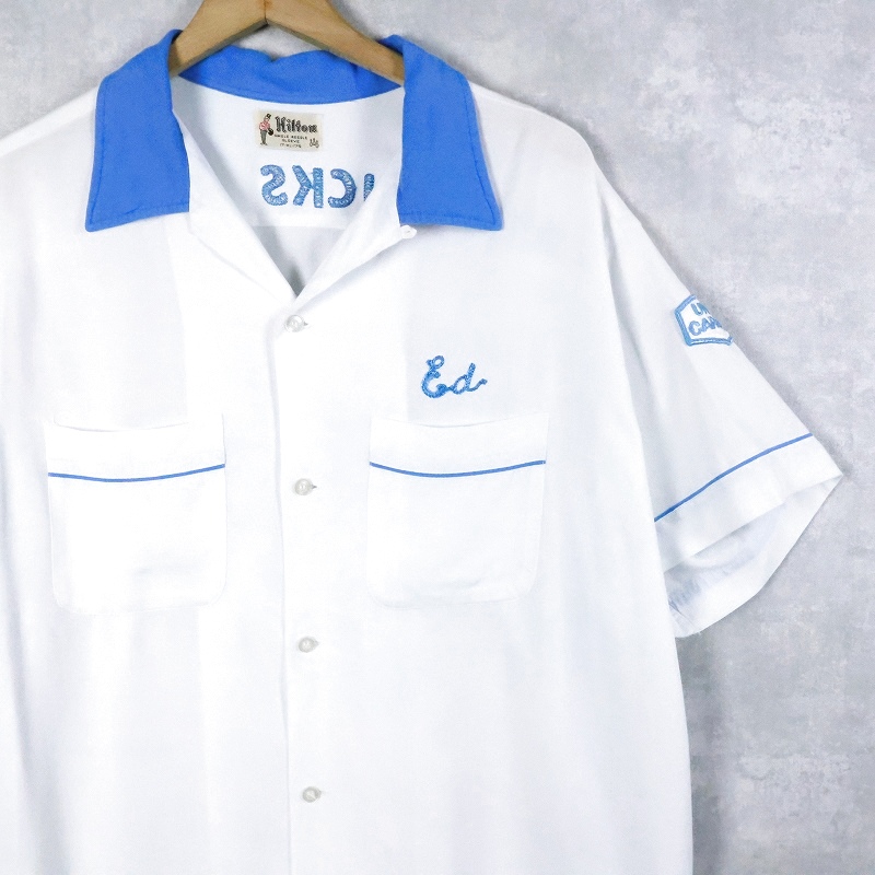 60's Hilton "Linde" チェーン刺繍×ワッペン付き レーヨンボウリングシャツ XL [168226]