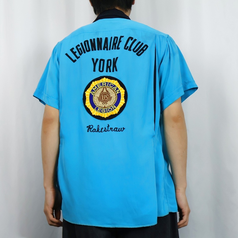 60's NAT NAST "LEGIONNAIRE CLUB YORK" チェーン刺繍×ワッペン付き レーヨンボウリングシャツ [168228]