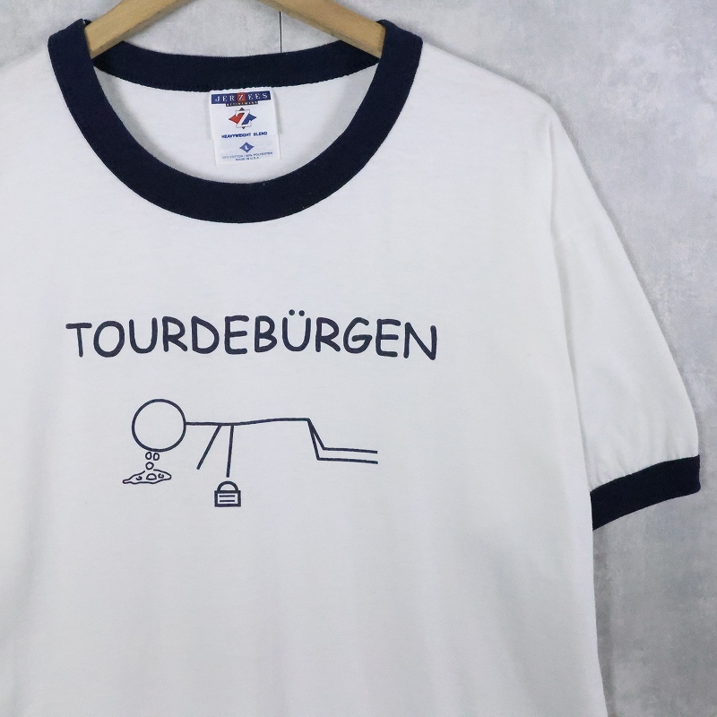 USA製 TOURDEBÜRGEN イラストプリント リンガーTシャツ L [168233]