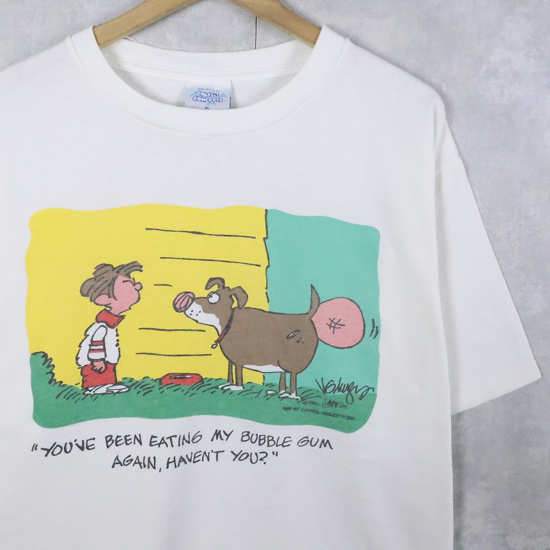 90's "YOU’VE BEEN EATING MY BUBBLE GUM...." シュールイラスト プリントTシャツ XL [168246]
