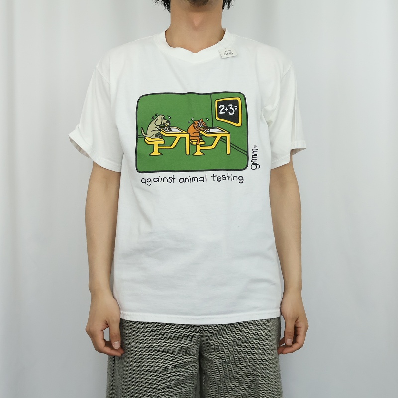 Grimm "against animal testing" シュールイラスト プリントTシャツ M [168253]