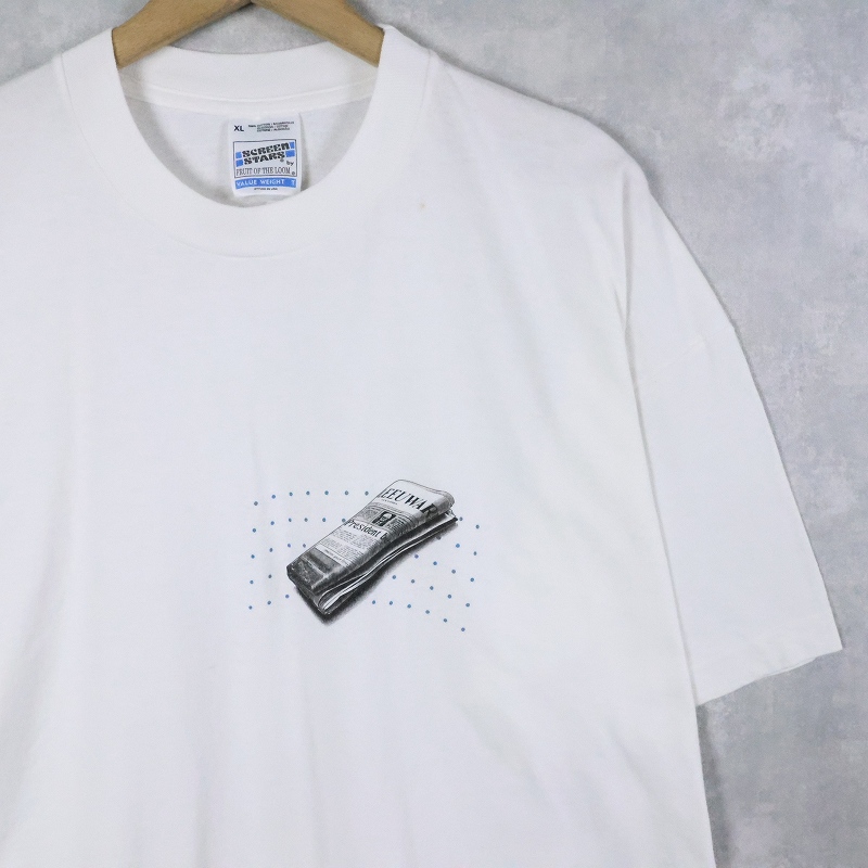 90's FRUIT OF THE LOOM IRELAND製 新聞プリントTシャツ XL [168258]