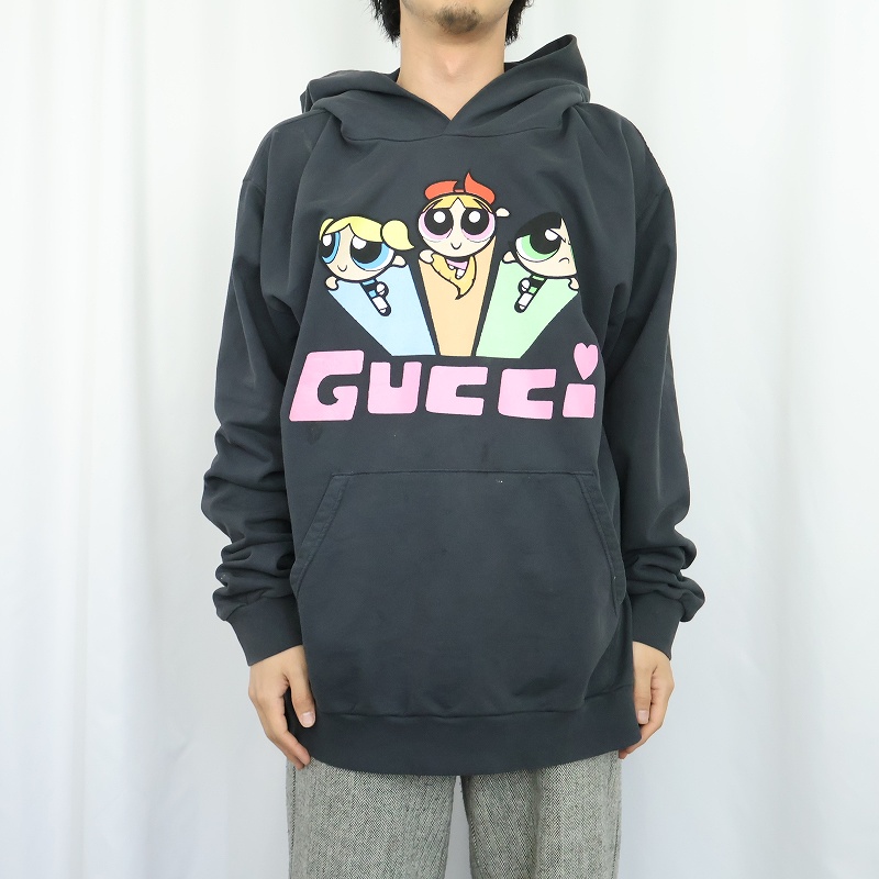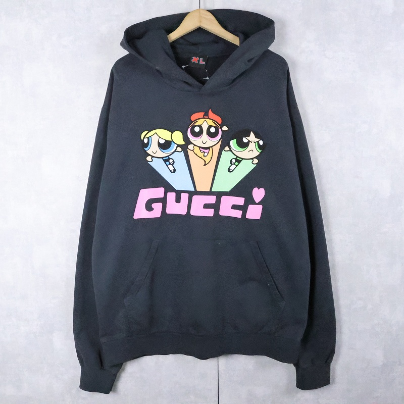 ブート GUCCI × The Powerpuff Girls キャラクタープリントスウェットフーディー BLACK [168266]