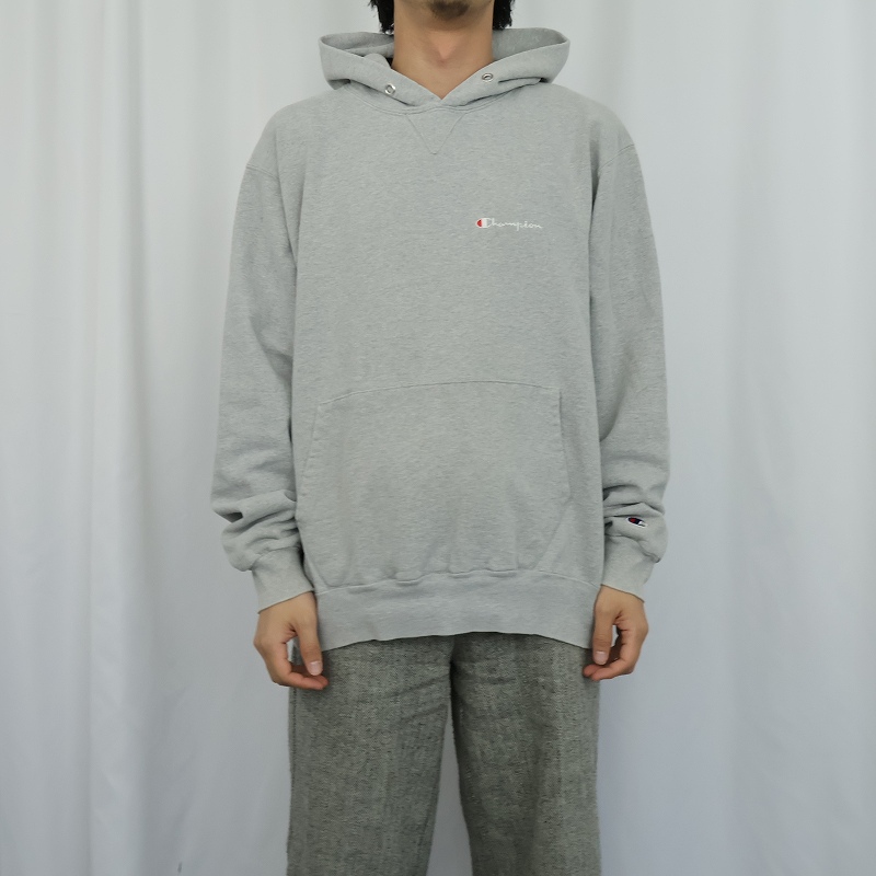 90's Champion 青刺繍タグ 後期 USA製 前V ロゴ刺繍スウェットフーディー XL [168270]