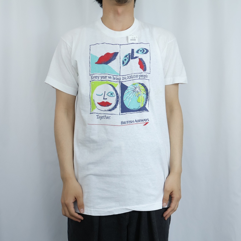80〜90's British Airways "Every year we bring 24,000,000 people Together" 航空会社プリントTシャツ [168322]