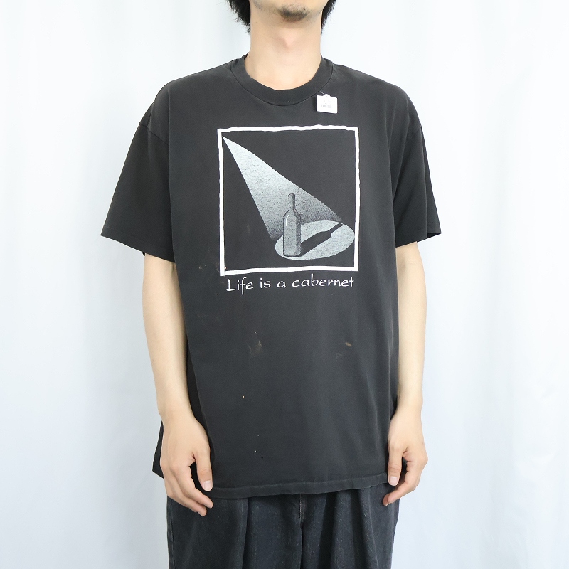 90's USA製 "Life is a Cabernet" ワインボトルプリントTシャツ BLACK XL [168338]