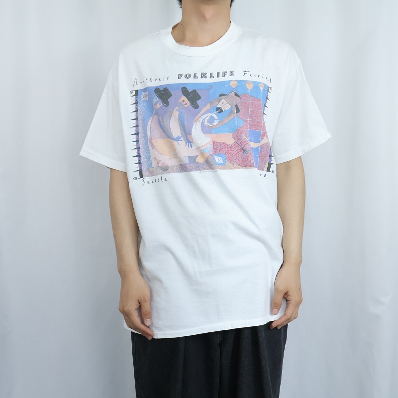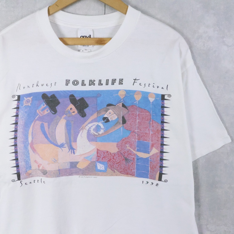 90's Fulgencio Lazo USA製 "Northwest Folklife Festival" フェスティバルプリントTシャツ XL [168357]