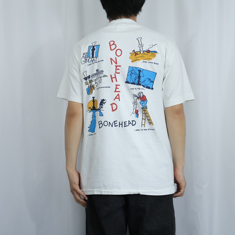 80〜90's USA製 "BONEHEAD" イラストプリントTシャツ L [168360]