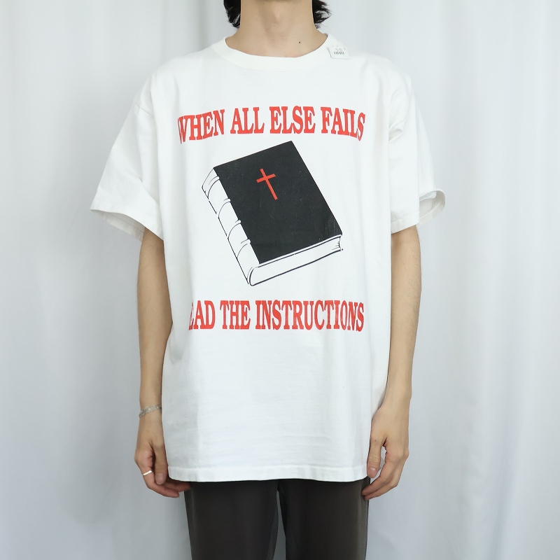 90's USA製 "WHEN ALL ELSE FAILS READ THE INSTRUCTIONS" ジーザスプリントTシャツ [168384]
