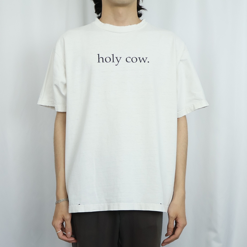 90's USA製 "holy cow." 牛イラストプリントTシャツ L [168385]