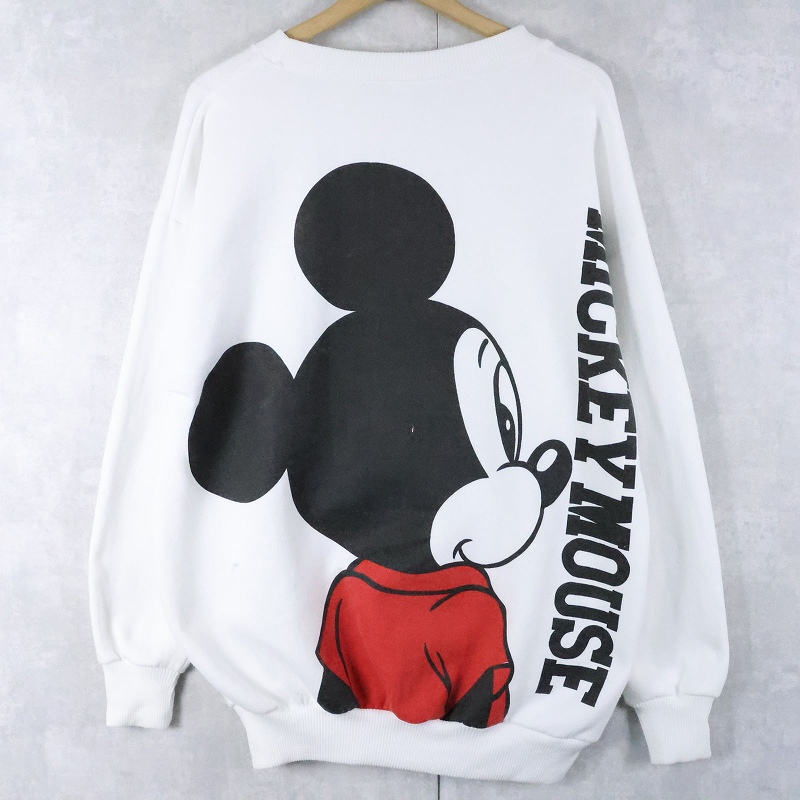 80〜90's Disney MICKEY MOUSE USA製 キャラクタープリントスウェット L [168390]