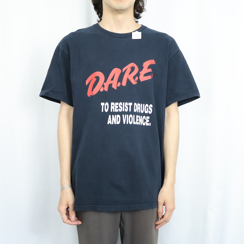 90〜2000's "D.A.R.E. TO RESIST DRUGS AND VIOLENCE" 薬物乱用防止団体 メッセージプリントTシャツ BLACK L [168416]