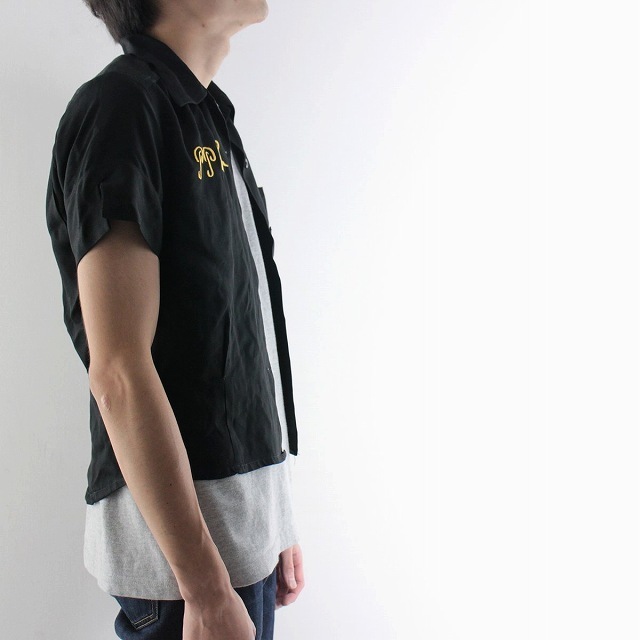 - 今期特に注目していただいた方も多かったと思いますボーリングシャツ。 こちらの一枚は、バックに有名な電力会社のキャラクター「レディ・キロワット」が入る、存在感抜群の一枚♪ もともとは、アラバマ電力のコリンズ氏が、1925年のある日、カミナリが落ちるのを見たとき、その光がひとの手足のようだったので、思いついたというものです。イナヅマの体に、ゴムの手袋とブーツ、電球の鼻と電気コンセントの耳がつけられ、そのデザインがとてもPOPで長く世界で愛されたキャラクターでした。 そんなモチーフが入るボウリングシャツ オープンカラー、ワッペンや刺繍の程よく緩いデザイン 通常のシャツより男らしいワイルドさと、ルードな雰囲気がとても旬な着こなしを提案してくれるアイテムであり、本日の一枚は、その中でも古着において非常に人気の高いブラックベースなだけに、多くの方への高い需要を持った一枚だと感じます。 刺しゅうの部分が鎖状に縫われたチェーンステッチと呼ばれる手法も、古い年代ならではの、雰囲気を高める仕様♪ 男性だと、171cmのスタッフが着用してピッタリ目なサイズに、女性ですと、153cmスタッフが着用して程よく身幅にゆとりのあるサイジング、是非お好きな方は狙っていただきたい一枚です!