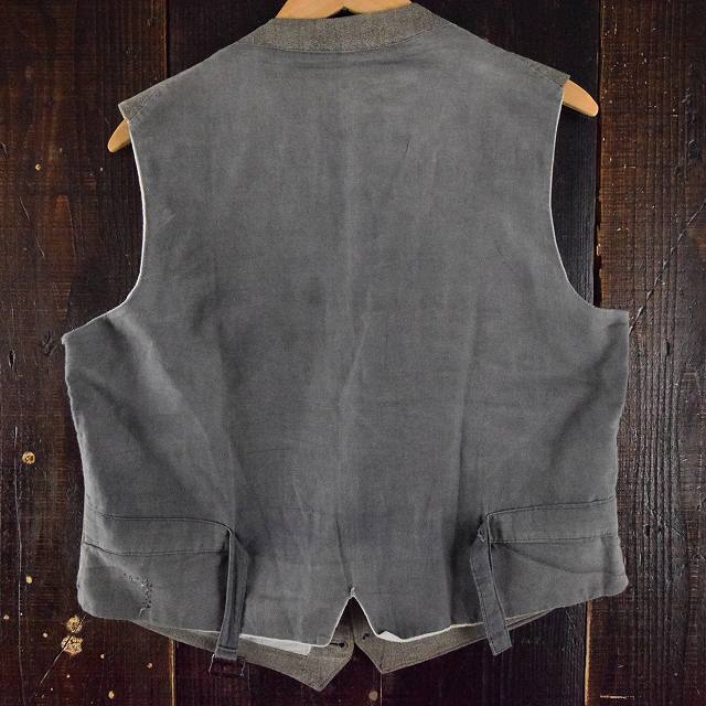 1930's フランス 2本針シンチバック付き動物ボタンブラックシャンブレーベスト [60546]