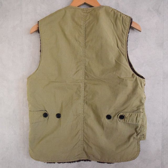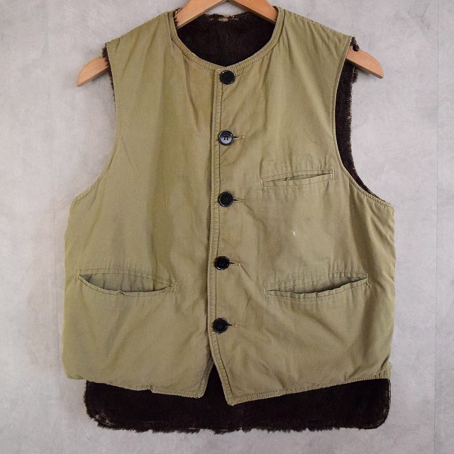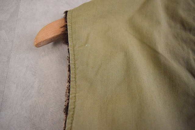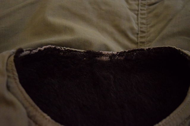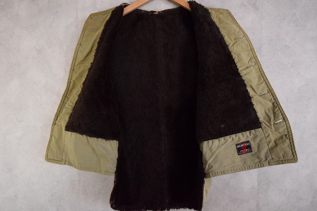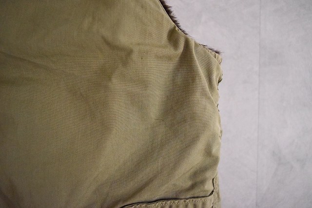 - 同時期に海軍へPコートの納入もあり、またデッキベストやN-1ベストと呼ばれる裏ボアのベストとも類似している点から軍関連の可能性も否めませんが、おそらく背面の長いバックの仕様からワーク、ハンティングの類と判断しています。