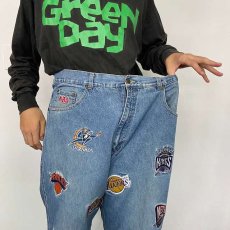 UNK NBA パスケットボールチーム刺繍 デニムパンツ W37 [82421]