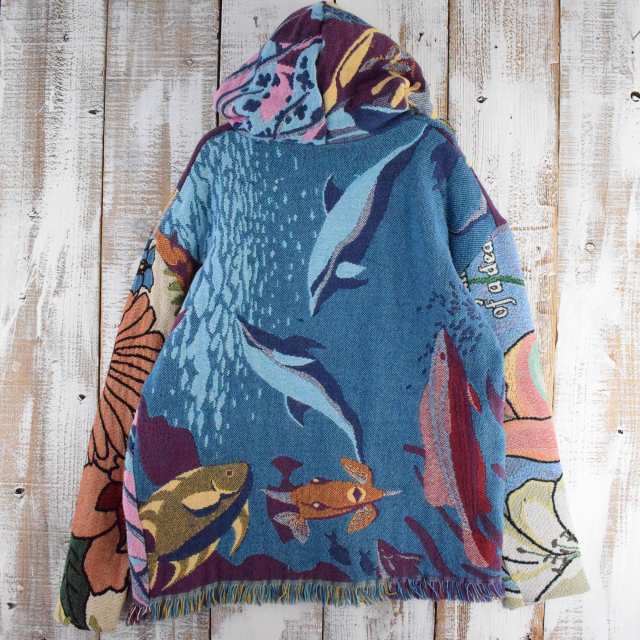 Bizzrad "Sea friends Sweter" 花×マリン柄 ブランケットリメイク プルオーバージャケット XL [85986]